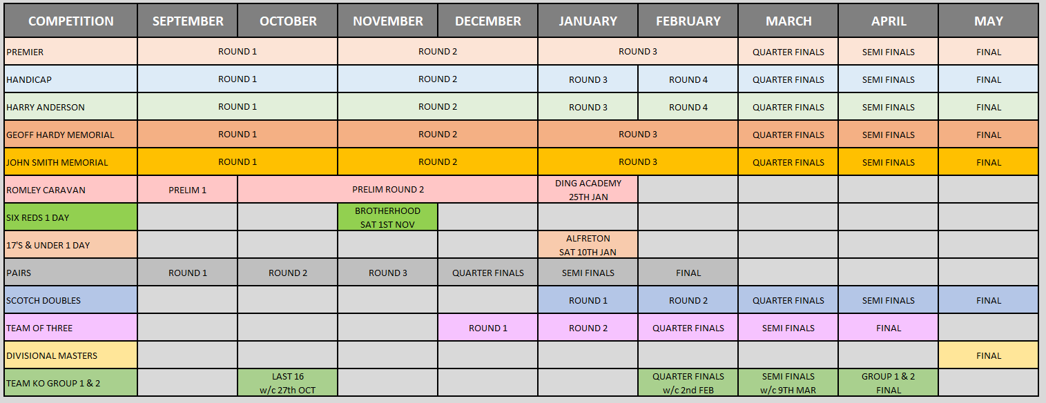 COMPETITION SCHEDULE 2025/26 PLEASE NOTE: NO EXTENTIONS WILL BE PERMITTED UNLESS IN EXCEPTIONAL CIRCUMSTANCES ONLY