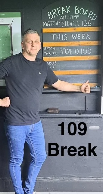 Brotherhood’s Kieron Stevenson was also thrilled to notch a century break this week, even if it came during a friendly match against his clubmate, Matt Large. Stevenson demonstrated he’s still got the skills with an impressive 110 break. Later, he took to Facebook to share a light-hearted jab: